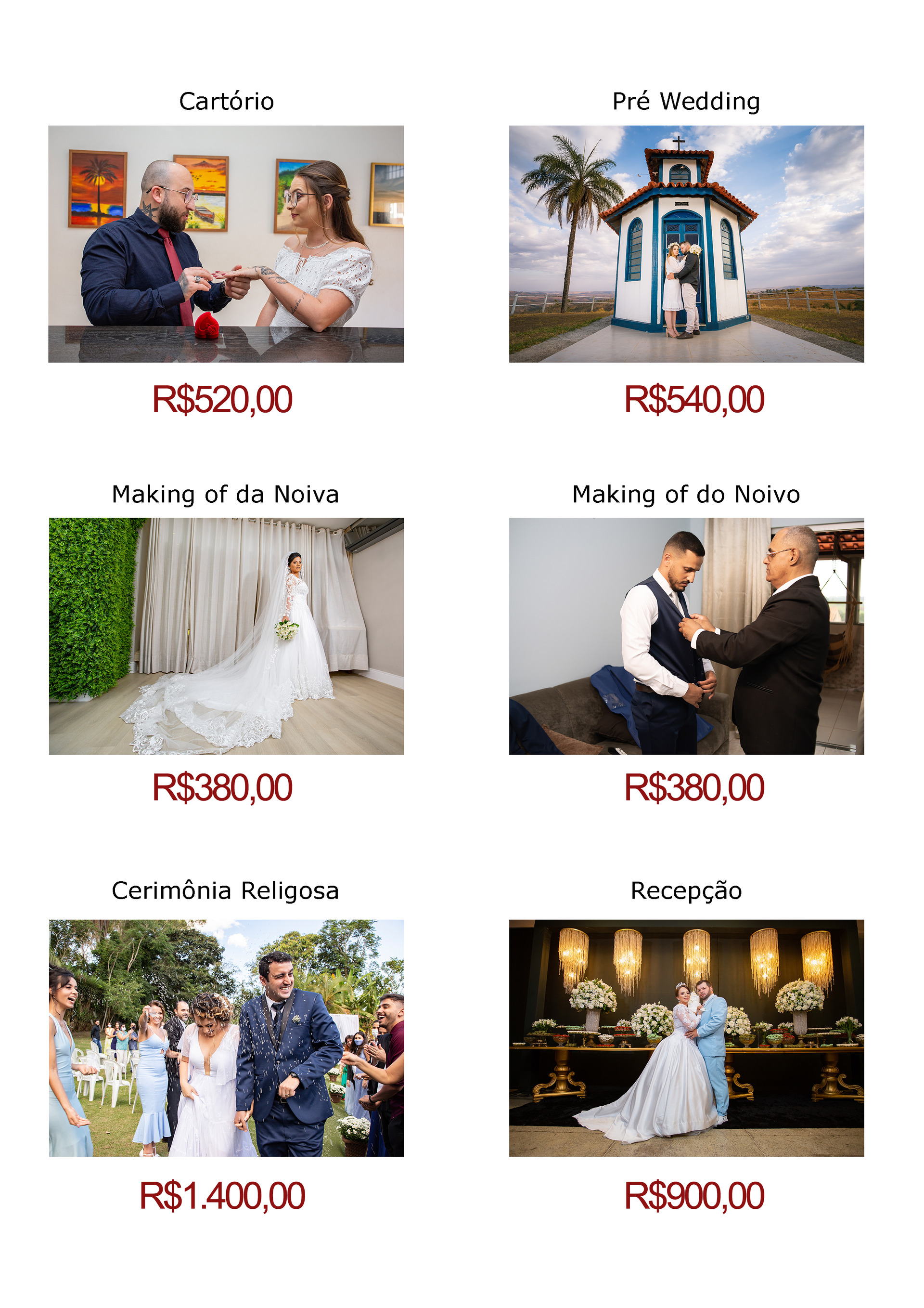 Valores válidos para a contratação conjunta da Cerimônia Religiosa